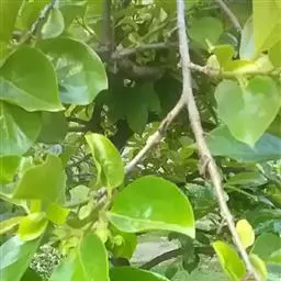 西村早生 原产日本,1988年引入国家柿种质资源圃,属于不完全甜柿。该品种果实大,平均重180-200克。比富有略高的扁圆形,果面淡黄橙色,完熟后略带橙红色。有4粒以上种子时,果肉中都有褐斑,且能完全脱涩。褐斑大而密。肉质粗而脆,软后粘质。糖度16%左右,味甜,汁液少,品质中上。与软枣嫁接亲和力强,在陕西阳历8月下旬成熟,是甜柿中最早熟的品种,在日本已采用保护地栽培来提早上市时期,是一个高效益的品种。