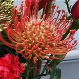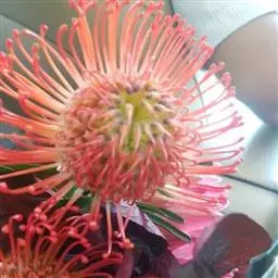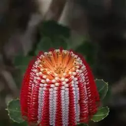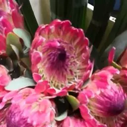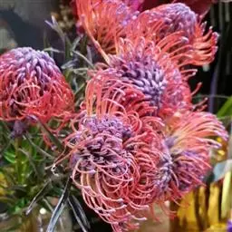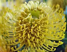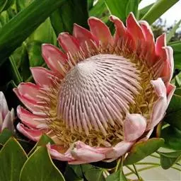 帝王花,山龙眼科帝王花属多年生常绿灌木植;茎干粗壮,叶色翠绿光亮;花朵呈圆球状;其苞片有的完全打开,…