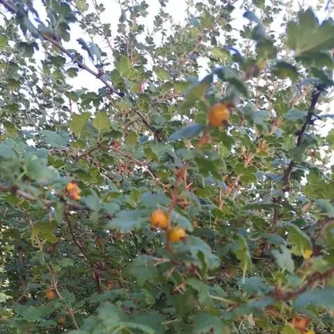 果实卵球形,直径7-10毫米,红色,无毛,味酸多汁。