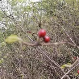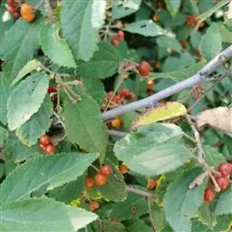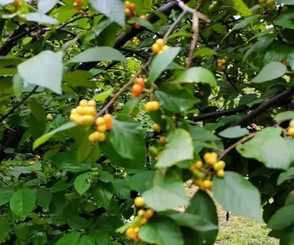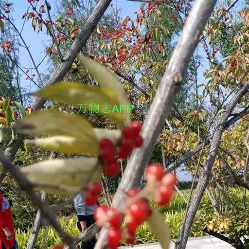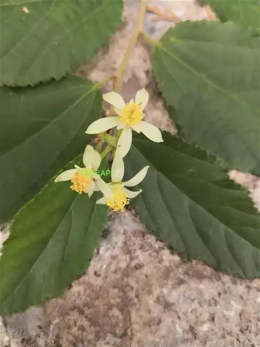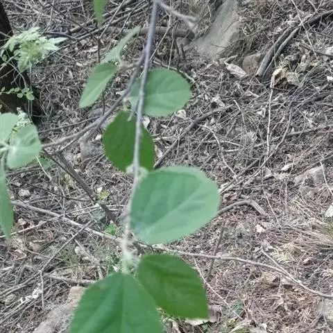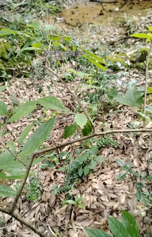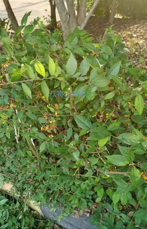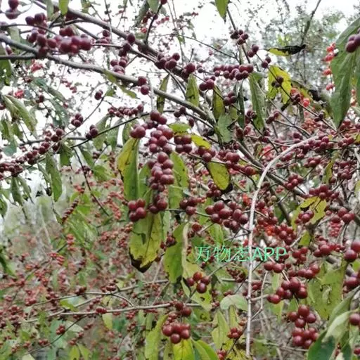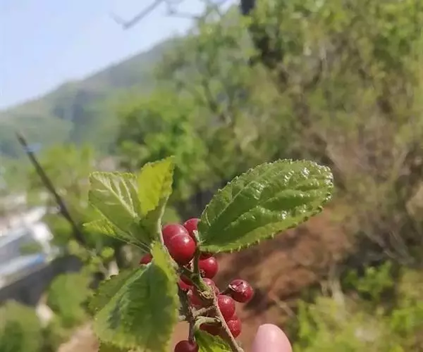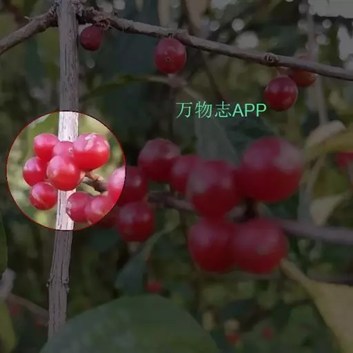 扁担杆 灌木或小乔木,高1-4米,多分枝;嫩枝被粗毛。叶薄革质,椭圆形或倒卵状椭圆形,长4-9厘米,宽2.5-4厘米,先端锐尖,基部楔形或钝,两面有稀疏星状粗毛,基出脉3条,两侧脉上行过半,中脉有侧脉3-5对,边缘有细锯齿;叶柄长4-8毫米,被粗毛;托叶钻形,长3-4毫米。聚伞花序腋生,多花,花序柄长不到1厘米;花柄长3-6毫米;苞片钻形,长3-5毫米;颧片狭长圆形,长4-7毫米,外面被毛,内面无毛;花瓣长1-1.5毫米;雌雄蕊柄长0.5毫米,有毛;雄蕊长2毫米;子房有毛,花柱与萼片平齐,柱头扩大,盘状,有浅裂。核果红色,有2-4颗分核。花期5-7月。