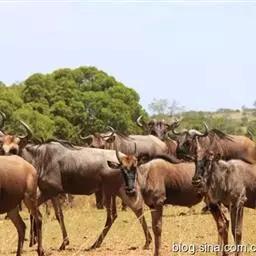 角马属,是偶蹄目牛科下的一属。角马属共有两种,即斑纹角马,白尾角马。…