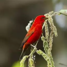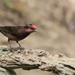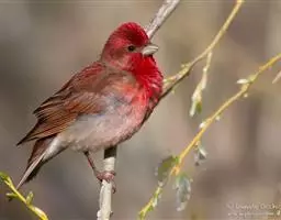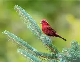 酒红朱雀小型鸟类,体长13~15厘米。雄鸟通体深红色,头部深朱红或棕红色,下背和腰玫瑰红色,…
