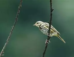 雌鸟头顶橄榄黄色,枕和头侧暗橄榄黄色。背、肩鼠灰色,羽缘橄榄黄色或橙黄色具暗色条纹,腰和尾上覆羽橄榄黄色或橙黄色,两翅和尾同雄鸟,但中覆羽羽缘白色,下体灰色,喉、胸缀橄榄黄色。