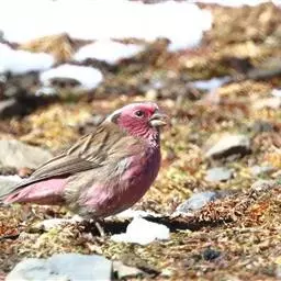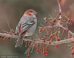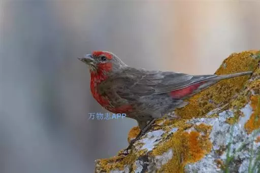 北朱雀,是燕雀科朱雀属鸟类。雄鸟额和头顶前部珠白色具窄的粉红色羽缘,…