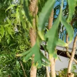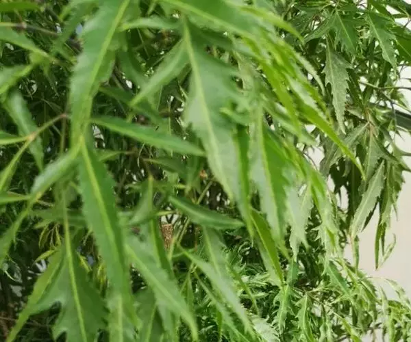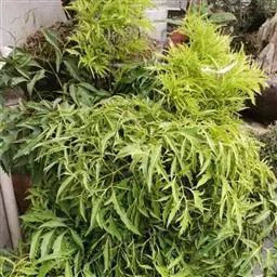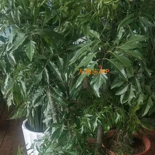 常绿性灌木。株高1-3米,侧枝细长,分枝皮孔显著。叶为不整齐的2-3回羽状复叶,中脉明显,小叶狭长披针形,羽状深裂形,叶缘呈不规则锯齿状,叶面平滑,羽状侧脉,纸质,有叶鞘,侧枝多下垂,树冠呈伞状。