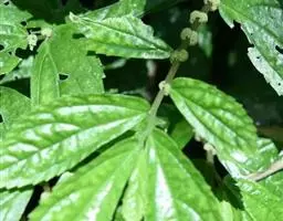 叶无柄或近无柄;叶片草质,斜倒披针状长圆形或斜长圆形,有时稍镰状弯曲,长4.5-16(-19)厘米,宽2.2-4.5(-6)厘米,顶端骤尖(骤尖部分全缘),基部在狭侧楔形,在宽侧圆形或浅心形,边缘在基部之上有较多牙齿,上面有少数短糙伏毛,下面无毛或沿脉有短毛,钟乳体明显,密,长0.3-0.4毫米,叶脉羽状,侧脉每侧5-8条;托叶狭条形或狭三角形,长3-5毫米,无毛。