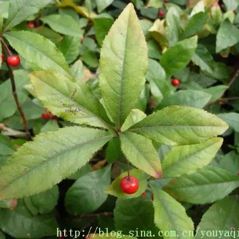 出自《本草图经》:百两金,叶似荔枝,初生背面俱青,结花实后,背紫面青。苗高二、三尺,有干如木,…