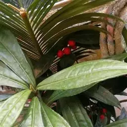 矮紫金牛是报春花科、紫金牛属灌木,株高1-2米。叶片革质,倒卵形或椭圆状倒卵形,少数倒披针形,…