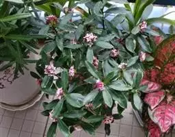 灌木,高达2米,通常无毛,据说有时被“褐色绒毛”;叶厚,新鲜时略肉质,倒披针形或倒卵形,顶端钝和有时短渐尖,基部楔形,长6-12厘米,宽3-5厘米,全缘,具平整或微弯的边缘,无毛,深绿色,具极模糊或不明显的腺点;侧脉极细和不明显,连成边缘脉;花序具梗,亚伞形花序或复伞房花序,近顶生或腋生于特殊花枝的叶状苞片上,花枝基部膨大或具关节;花粉红色至白色,长5-8毫米;萼片圆形,花蕾时呈覆瓦状排列,边缘干膜质和具细缘毛,具厚且黑色的腺点;花瓣广卵形,具黑点;雄蕊与花瓣近等长,花药披针形,顶端点尖,背部具黑腺点;果直径约8毫米,红色至紫黑色,具极多的小腺点,新鲜时多少肉质。