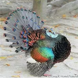 眼斑吐绶鸡:是火鸡科的两种鸟类之一。体型比普通火鸡略小些,体长1米左右,体重2.4-5.4千克,…