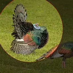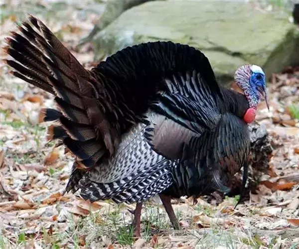 火鸡(学名:Meleagris gallopavo):也叫吐绶鸡。体长110-115厘米。翼展125-144厘米,体重2.5-10.8千克。嘴强大稍曲。头颈几乎裸出,只有稀疏羽毛,并着生红色肉瘤,喉下垂有红色肉瓣。背稍隆起。体羽呈金属褐色或绿色,散布黑色横斑;两翅有白斑;尾羽褐或灰,具斑驳,末端稍圆。脚和趾强大。体羽从乳白色至棕灰色至黑色褐黑色,闪耀多种颜色的金属光泽。头、颈上部裸露,有红珊瑚状皮瘤,喉下有肉垂,颜色由红到紫,可以变化。雄火鸡尾羽可展开呈扇形,胸前一束毛球。