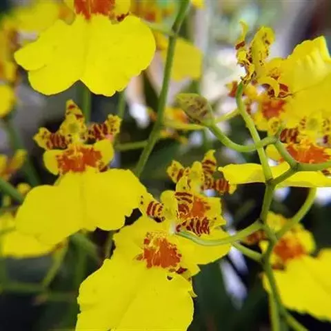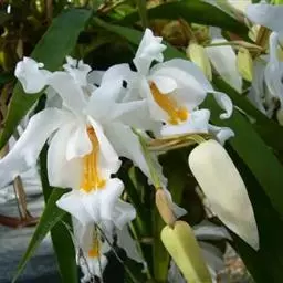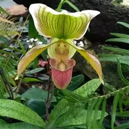 坛花兰(学名:Acanthephippium sylhetense Lindl.):假鳞茎卵状圆柱形,长达15厘米,基部粗1.5-4厘米,具2-4个节,被数枚大型鳞片状鞘;鞘膜质,彼此套叠。叶2-4枚,互生于假鳞茎上端,厚纸质,长椭圆形,通常具5条主脉。花葶肉质而肥厚,基部具数枚宽卵状披针形的鳞片状鞘;总状花序具3-4朵花;花白色或稻草黄色,内面在中部以上具紫褐色斑点;花瓣藏于萼筒内,近卵状椭圆形,长2-2.5厘米,宽1.1厘米,先端钝,基部收狭为爪,具7条脉;唇瓣3裂。花期4-7月。