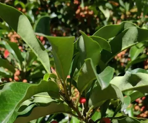 铁冬青(Ilex rotunda Thunb.),别名救必应、熊胆木、白银香、白银木、过山风、红熊胆、羊不食、七星香、万紫千红等,为冬青科亚热带常绿灌木或乔木,高可达20米,胸径达1米;树皮灰色至灰黑色;叶薄革质,椭圆形、全缘,叶面有光泽;花小,黄白色,芳香;雌雄异株,通常4-7朵排成聚伞花序,腋生或生于当年小枝上,果球形,6-8mm大小,熟时红色;花期3一4月,果熟期10-12月。 生于海拔400~1100米的山坡常绿阔叶林中和林缘,野外一般多生于湿润肥沃的山间林缘和向阳山坡或溪谷两旁。喜温暖湿润的气候。铁冬青分布于长江流域以南、台湾,朝鲜、日本等地也有。