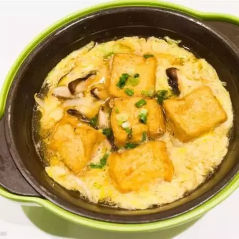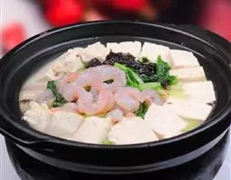 豆腐煲是一道美味可口的名肴,属于粤菜系。主料:北豆腐、蟹味菇、瑶柱、鲜茶树菇