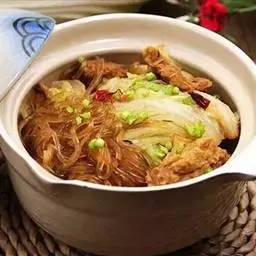 粉丝煲是以粉丝、生菜为主料,以蘑菇,平菇等为辅料制作的食品。