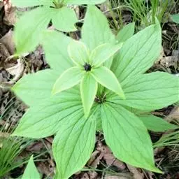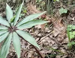 2.《本草衍义》:蚤休,无旁枝,止一茎挺生,高尺余。颠有四、五叶,叶有歧,似虎杖。中心又起茎,亦如是生叶。惟根入药用。
