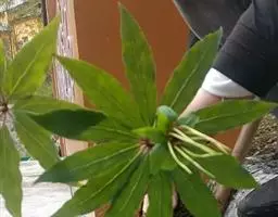 ③ 狭叶蚤休叶11~15片,线形至线状披针形,通常略弯曲呈镐刀状,长9.5~19厘米,宽5~9毫米。花的外列被片5~7瓣,线形或线状披针形,长3~8厘米,内列被片5~7瓣,线形,超出外列被片,有时或倍之;花药药隔延伸极短或无。分布四川、云南。