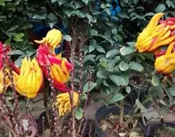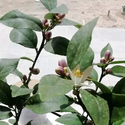 香橼为小乔木或灌木状;株高达5米;幼枝、芽及花蕾均暗紫红色;茎枝多刺,长达4厘米;单叶,…