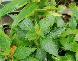 凉粉草为唇形科植物,茎下部伏地,上部直立, 叶卵形或卵状长圆形,先端稍钝,基部渐收缩成柄,边缘有小…