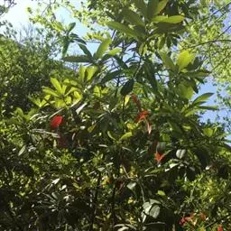 海南杜英,属杜英科杜英属的常绿小乔木。树冠整齐成层,枝条无毛。叶子聚集在顶端生长,狭披针形或倒披针…
