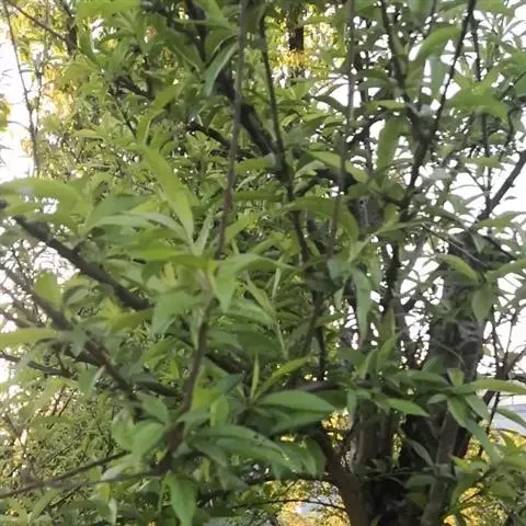 乔木,高12米;嫩枝秃净无毛,多少有棱,干后红褐色;老枝圆柱形,暗褐色。叶纸质或膜质,倒披针形,长8-12厘米,宽3-4厘米,先端尖锐,尖头钝,基部变窄而下延,上面干后黄绿色,发亮,决不是暗褐色而暗晦无光,下面之浅绿色,多少发亮,侧脉7-8对,在下面突起,网脉疏,在上面不明显,在下面略突起,边缘有小钝齿;叶柄长4-7毫米,偶有长达1厘米,无毛,干后变黑色。