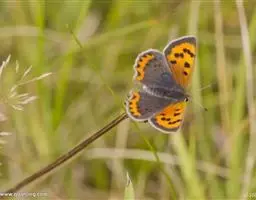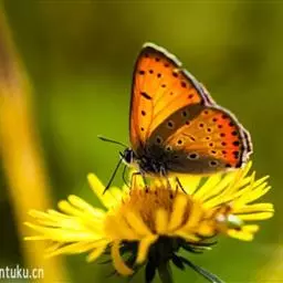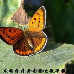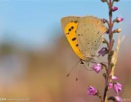 橙灰蝶Lycaena dispar Hauorth,鳞翅目、灰蝶科。这类蝴蝶雌雄异型,雄蝶前翅翅面…