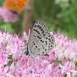 曲纹紫灰蝶是鳞翅目灰蝶科昆虫。成虫体长10-12毫米,翅展20-35毫米,翅面紫蓝色,前翅外缘黑色,…