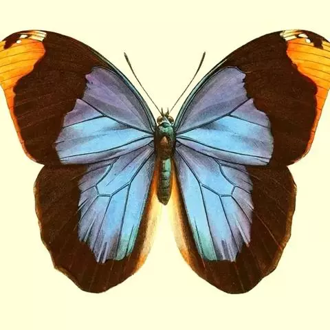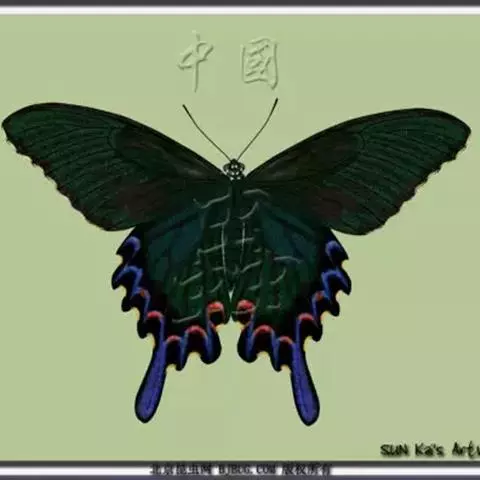 天堂凤蝶翅展可达105mm。前、后翅自基角至后缘约1/2~2/3端为纯净的宝蓝色,后角至后缘1/3…