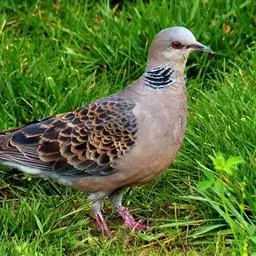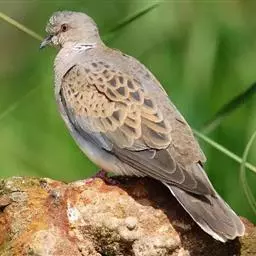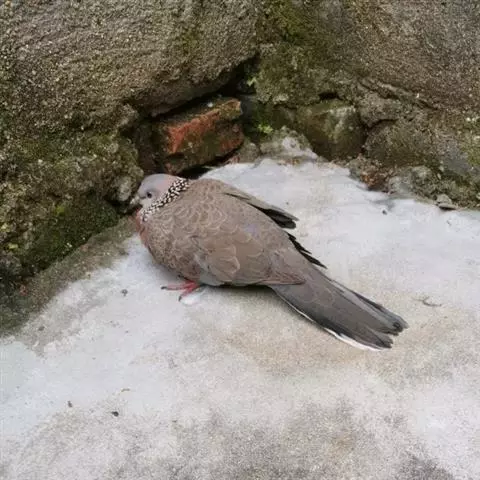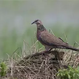 山斑鸠,是鸽形目鸽鸠科斑鸠属鸟类,又名金背斑鸠、棕背斑鸠、山鸠、金背鸠、麒麟斑、麒麟鸠、东方斑鸠、绿斑鸠、山鸽子。山斑鸠颈侧具明显黑白色条纹的块状斑,上体深褐色、具扇贝状斑纹,羽缘棕色,尾羽近黑色,下体多偏粉色。虹膜黄色,喙灰色,脚粉色。山斑鸠是留鸟,在中国常见且分布广泛。此外,还分布于不丹、尼泊尔、巴基斯坦、印度、日本等国。栖息于针阔混交林、季风常绿阔叶林、果园及农耕区,多成对活动于开阔农耕区、村舍、寺院周围及防火林带。取食于地面,主要觅食植物种子、果实、嫩芽等,也吃昆虫。山斑鸠飞翔时鼓翼快速,叫声为反复而低沉的“咕咕咕”声。繁殖期在4-7月,营巢于林中树上,通常一年繁殖2窝,窝卵数2枚,由雌雄亲鸟轮流孵卵,孵化期18~19天。山斑鸠的肉、卵可食,肉入药可益气明目、强筋壮骨,治久病气虚、衰弱无力、两目昏暗等病症。山斑鸠啄食杂草种子,对农田清除杂草有益;但有时也刨食农作物及树的种子。山斑鸠