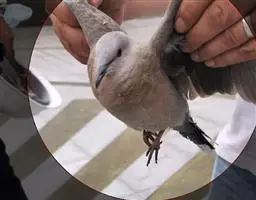 欧斑鸠体长27厘米,是一种体型略小的粉褐色斑鸠。颈侧具多黑白色细纹的斑块,翼覆羽深褐,…