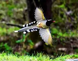金黄鹂(学名:Oriolus oriolus)是中型鸣禽。体长24厘米。头全黄色。体羽鲜丽,主要由为黄和黑的颜色组合,雌鸟与幼鸟多具条纹。雄性成鸟眼先、翼及尾基部黑色,其余为鲜亮黄色。雌鸟较暗淡而多绿色。幼鸟偏绿色,下体具细密纵纹。虹膜红色;嘴红色;脚灰色。喙长而粗壮,约等于头长,先端稍下曲,上喙端有缺刻;鼻孔裸露,盖以薄膜;翅尖长;尾短圆,跗跖短而弱。