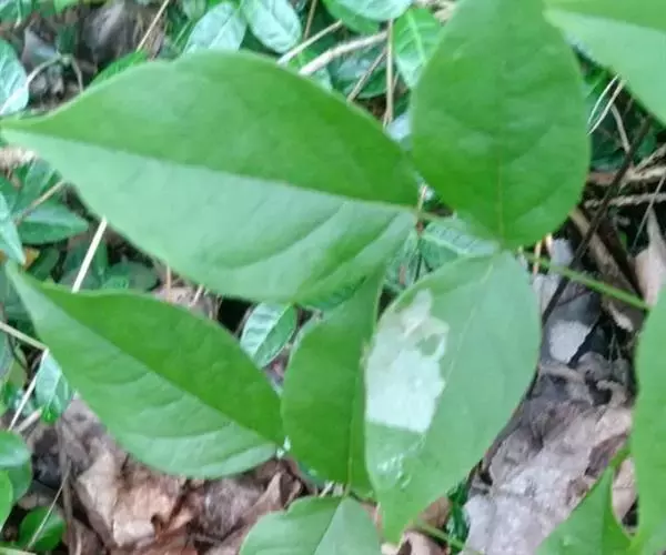 攀援状灌木。羽状复叶长15-28厘米;小叶2-3对,厚纸质或薄革质,卵状椭圆形、卵状长椭圆形或椭圆形, 中南鱼藤 长4-13厘米,宽2-6厘米,先端渐尖,略钝,基部圆形,两面无毛,侧脉6-7对,纤细两面均隆起;小叶柄长4-6毫米,黑褐色。