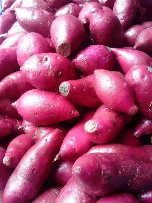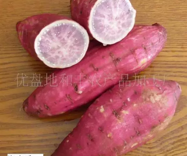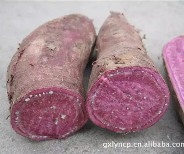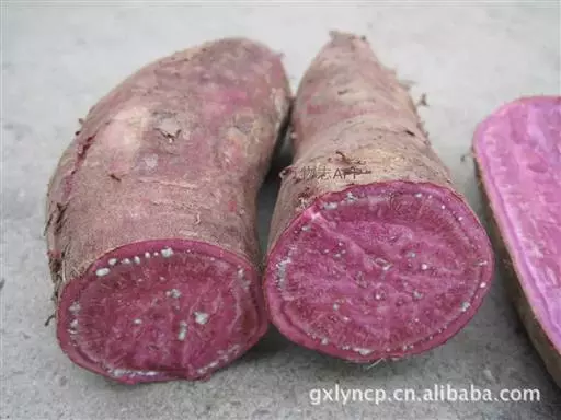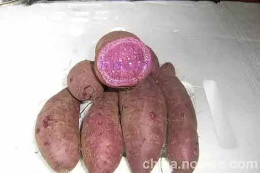 ①山川紫。该品种从日本引进,色素含量高,比普通紫红薯的花青素含量高2倍以上,除食用外还可用来提取色素。667平方米产量一般在1500公斤以上,薯形细长,整齐度差,主蔓茎长6米-7米。用该薯的嫩茎叶(尖)做菜,口感比空心菜还好。