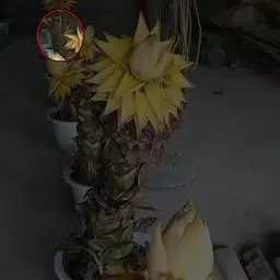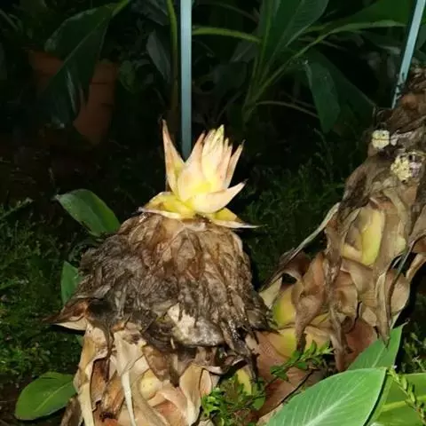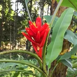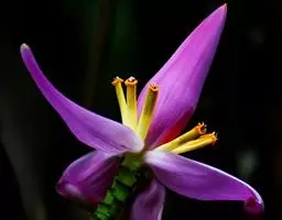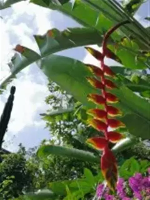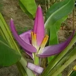 紫苞芭蕉形如一枝亭亭玉立、含苞待放的荷花,但却开在高高的芭蕉树上,这就是紫苞芭蕉。