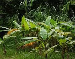香蕉’),芭蕉科芭蕉属多年生草本植物,植株丛生,有匐匍茎;假茎浓绿有黑色斑点;叶片长圆形,…