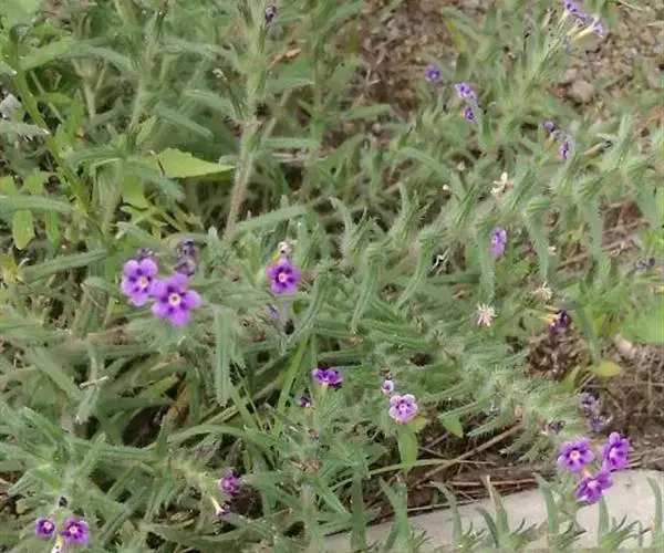 全草长8-25cm,密被粗硬毛和短柔毛。根细圆柱形,长短不一,直径0.5-2mm,表面紫黑色或黑棕色,断面皮部黑紫色,木部淡黄白色。茎细圆柱形,直径0.5-2.5mm,表面灰绿色或暗褐色,断面类白色,中空。叶互生,多破碎卷曲,草质,灰绿色,完整者展平后呈倒披针状条形或披针状条形。花棕黄色。小坚果三角状卵形,常4个着生在一起。气微,味微苦。
