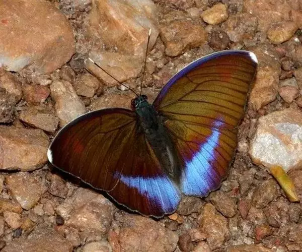 枯叶蛱蝶,又名木叶蝶、树叶蝶等,属于蛱蝶科。翅正面黑褐色,具深蓝色光泽,前翅顶角尖出,…