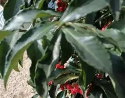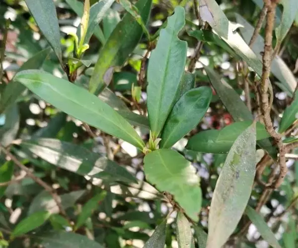 大灌木,高2-7m。叶互生;叶柄长约1cm;叶片革质,长圆状倒披针形至倒披针形,长7-17cm,宽1.3-6cm,先端急尖或钝,稀突然渐尖,基部楔形,多少下延,全缘,背面中脉隆起,侧脉不明显。伞形花序或花簇生,着生于具覆瓦状排列的苞片的小短枝上,小短枝腋生或生于无叶老枝叶痕上,有花3-10朵,苞片广卵形,具疏缘毛;花梗长2-3mm;花长(2)3-4mm;萼片卵形,稀圆形,长约1mm,具缘毛,有时具腺点;花瓣白色或淡绿色,有时为紫红色,基部连合达全长的1/4,花时反卷,卵形或椭圆形,具腺点,里面和边缘密被乳头状突起;雄蕊在雌花中退化,在雄花中着生于花冠中部,花丝极短,花药卵形,先端常具乳头状突起;雌蕊与花瓣等长或超过花瓣,花柱极短,柱头伸长,先端扁平。果球形或近卵形,直径4-5mm,灰绿色或紫黑色,有时具纵行腺条纹或纵肋,冠以宿存花柱基部,果梗有时长达7mm。花期4-5月,果期10-12月。