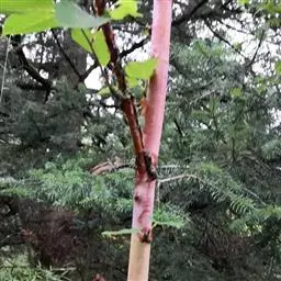 常有多个主干,树高12~28米、宽12~18米,无顶芽.幼树卵形,长大后呈圆形或不规则树冠.幼树树干光滑,肉色至锈红色,长大后树皮逐渐横向剥落,呈奶黄色至褐色,硬块状.