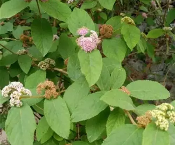 灌木,高1-3米;小枝、叶柄和花序均密被灰黄色星状毛和分枝毛。叶片卵状椭圆形或椭圆形,长6-15厘米,宽3-8厘米,顶端通常渐尖,基部钝或浑圆,边缘有细锯齿,表面被短硬毛,稍粗糙,背面被灰黄色星状毛和细小黄色腺点,侧脉8-12对,主脉、侧脉和网脉在背面隆起;叶柄粗壮,长1-2.5厘米。