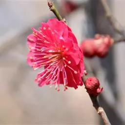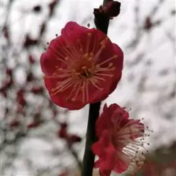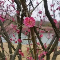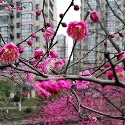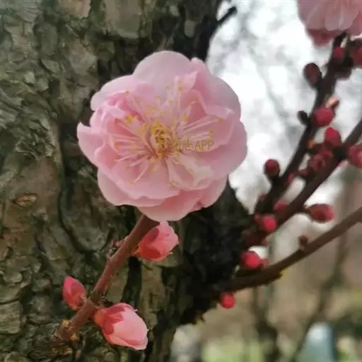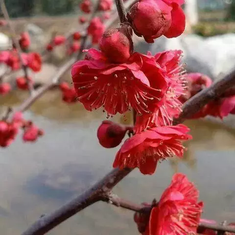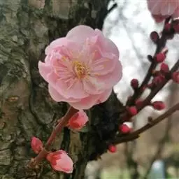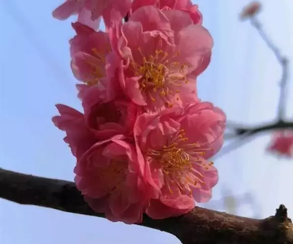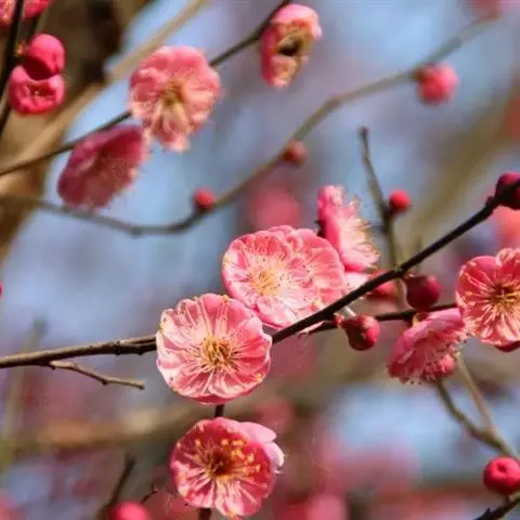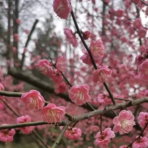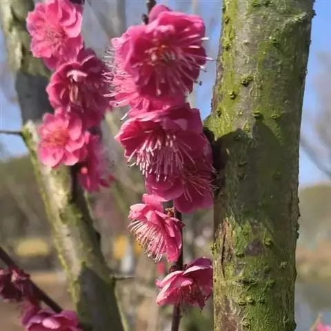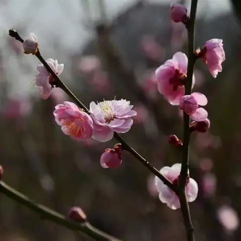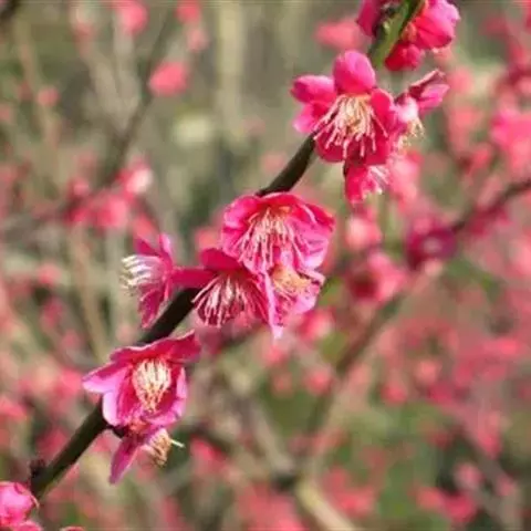 杏梅系的梅花观赏价值高,花径大、花色亮且花期长。
