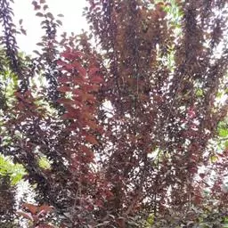 杏梅,杏与梅分别为蔷薇科的两个不同树种,枝叶介于梅杏之间,花托肿大、梗短、花不香,似杏,果味酸、果核表面具蜂窝状小凹点,又似梅。