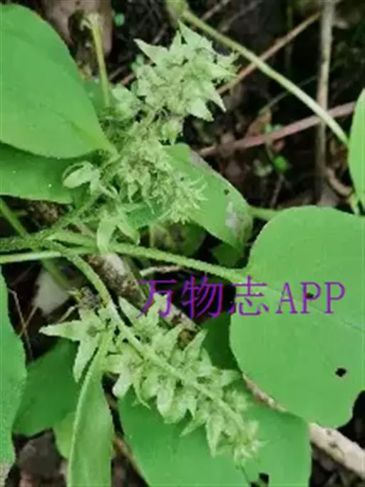 多年生草本;根状茎多条,细长,长达15厘米。茎数条,细弱,长10-35厘米,平卧或斜升。基生叶数个,叶片长卵形,先端渐尖,基部心形,两面都密生短糙毛,叶柄长达12厘米,茎生叶较小。花序含多数花,无苞片,密生短伏毛;花萼长约6毫米,5裂至基部,裂片线状披针形,背面有密短伏毛,腹面稍有毛;花冠漏斗状,白色或稍带淡红色,长约1厘米、无毛,筒部比萼长,檐部比筒部短2倍,裂片卵形,喉部附属物高约1毫米;雄蕊5,着生花冠筒上部,稍外伸,花丝长约3毫米,花药长圆形,长约0.9毫米,钝;子房4裂,花柱长约6毫米,柱头很小,头状。小坚果4,长3-5毫米,碗状突起的边缘内折。花果期4-5月。