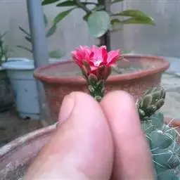 授粉:绯花玉开花之后,需要给它授粉,开花后一个星期左右就凋谢了,花茎就会掉落,在花盛开的时候在花蕊都露出来时用毛笔刮几下将种子收集起来,异花授粉就完成了。如果授粉成果的话子房就会开始膨胀,大概一个月之后就可采摘了。当然不一定是用毛笔刮完后就能收种的,这个跟花粉的存活和活率有关系。