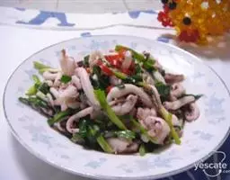 鱿鱼的切法:先从左角开始切,刀和鱿鱼呈45度的角,切那种连皮不要断刀的斜线就可以了;然后换反方向再…