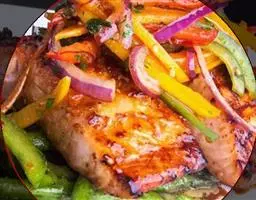 烤三文鱼是一款烧烤菜品,制作原料有三文鱼,芦笋,柠檬等。烤好的三文鱼油脂四溢,还可以沾一些烧烤酱食用。