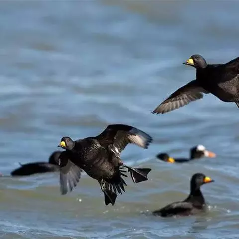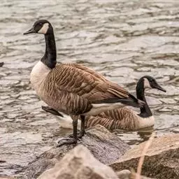 黑雁是雁形目鸭科黑雁属鸟类,又称黑鹅。头、颈、胸、嘴及脚黑褐色;虹膜褐色;背及两翼灰褐色;尾下覆羽白色;胸侧及胁部多近白色纹;颈部两侧各具一个特征性白色横纹,在颈前后断开,未能联成颈环。幼鸟颈部无白斑,而翅上多白色横纹。黑雁繁殖于北美洲、西伯利亚极地的苔原冻土带,越冬于南方沿海的草地及河口。在中国安徽也能见其身影。主要栖息在海湾、海港及河口等地,在冬季里大多出现在有耐碱植物生长的湖泊和水库周围,也出现在周围地势低洼的咸水湖和沿海地区,偶尔还出现在农田地里。性活跃,喜集群,常成群活动和栖息。主要以植物性食物为食。繁殖期在6-8月,雌鸟孵卵,雄鸟通常在距巢100米以内范围内守候警诫。雌鸟孵卵时常将头和颈朝地面平伸出去以降低高度。孵化期为22-28天。黑雁被列入中国林业局2000年8月1日发布的《国家保护的有益的或者有重要经济、科学研究价值的陆生野生动物名