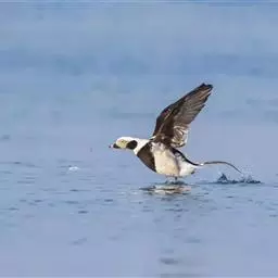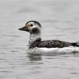 长尾鸭体长约58厘米,是中等体型的灰、黑及白色鸭,中央尾羽特长,雄鸟胸部的黑色斑块为特征。…