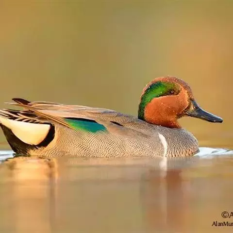绿翅鸭是小型鸭类,体长37厘米,体重约0.5千克。嘴脚均为黑色。雄鸟头至颈部深栗色,…