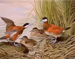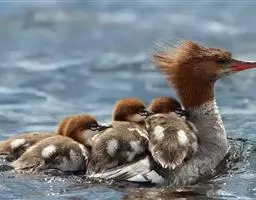 孵化出的雏鸟长满绒毛,留在巢里24小时后就可以走动并养活自己。雌鸭用软喉发声引并导它的小鸭子到具有丰富的无脊椎动物和鱼类的水域去觅食。幼鸭可以潜水,初步尝试的深度很浅。经过70天,幼鸭就具备了飞行能力。